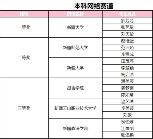 荣获一等奖的3支参赛队伍将代表新疆参加2023年2月份的华为ICT大赛2022-2023中国区实践赛全国总决赛,希望参赛师生再接再厉,再创佳绩!