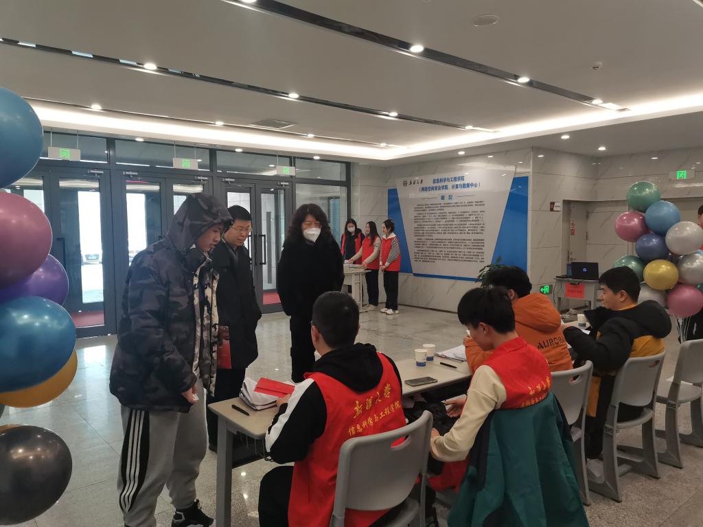2023年2月13日上午,大学党委副书记孟凡丽教授来到博达校区信息技术综合实验楼,检查指导信息学院2022级新生返校工作。