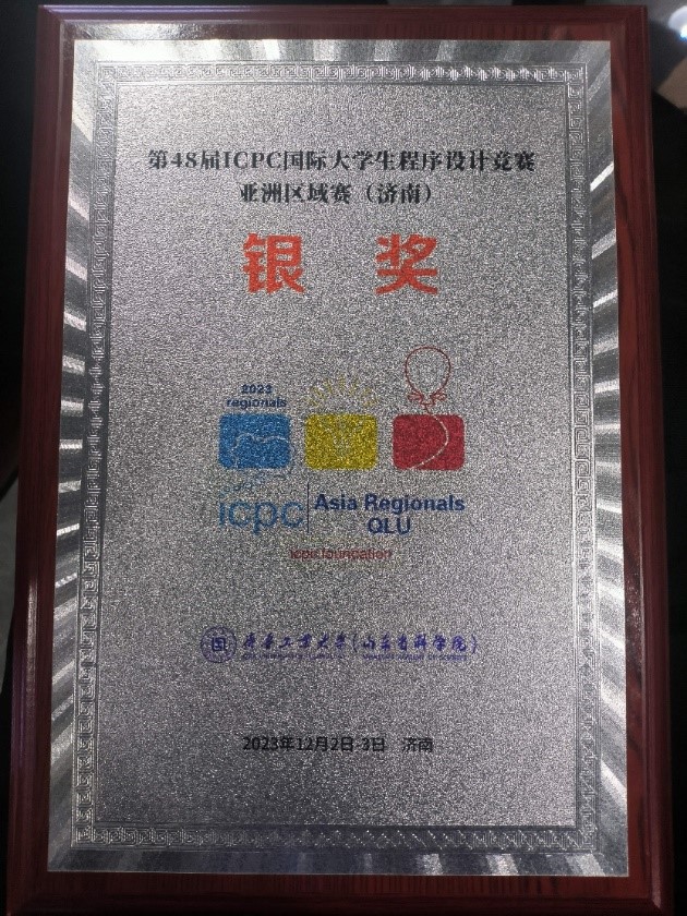 第48届ICPC国际大学生程序设计竞赛亚洲区域赛济南站于2023年12月2日-3日在齐鲁工业大学(山东省科学院)长清校区举行,经过激烈角逐,bwin中国官网学子喜获银奖1项。