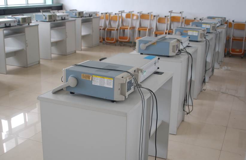 光纤通信实验室是专门为信息科学与工程学院开设的专业技术实验室。实验室于2004年进行了大规模的仪器设备更新。实验室在3#教学楼的604室,占地面积60平方米,两人一组,可以同时满足一个标准班的实验课。该室设备有:函数信号发生器20台;双踪示波器20台;数字万用表20台以及20台最新型的光纤通信实验系统。