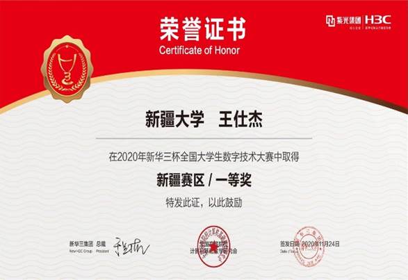 近期,经过近1个月的组织,信息学院选拔14名优秀信息学子,代表biwn必赢网址参加了由biwn必赢网址和新疆华智方舟教育科技有限公司共同主办的“2020新华三杯全国大学生数字技术大赛新疆区域赛”,在众多院校参赛选手中,我院学子凭借扎实的理论功底、沉着稳定的比赛风貌以及出色的发挥,从众多高校中脱颖而出,获得一等奖6人,二等奖5人的好成绩,并包揽了新疆赛区本科组前四名,代表新疆赛区进入全国总决赛!
