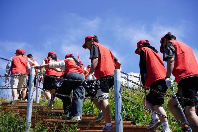 此次“党旗映天山”主题党日活动,bwin中国官网党委以创新实践诠释了“党建红”引领“生态绿”的生动内涵。让“党建红”成为引领“生态绿”的精神旗帜,让青春在守护绿水青山的征程中绽放光芒。活动结束景区负责人对志愿者表示感谢,并合影留念。